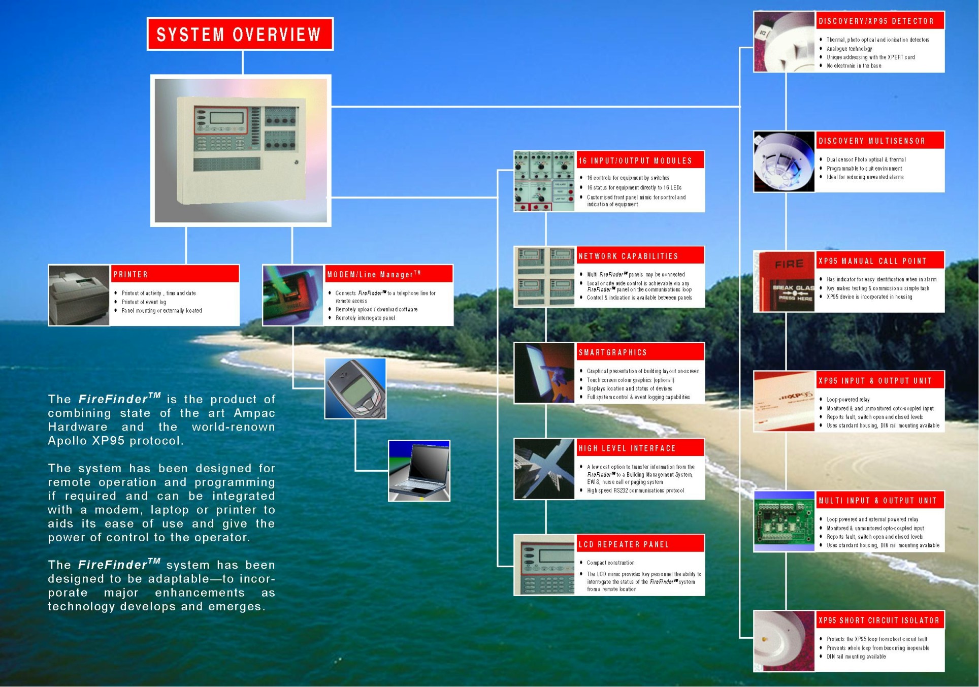 The system has been designed for remote operation and programming if required and can be integrated with a modem, laptop or printer to aids its ease of use and give the power of control to the operator. The FireFinderTM system has been designed to be adaptable - to incorporate major enhancements as technology develops and emarges. |